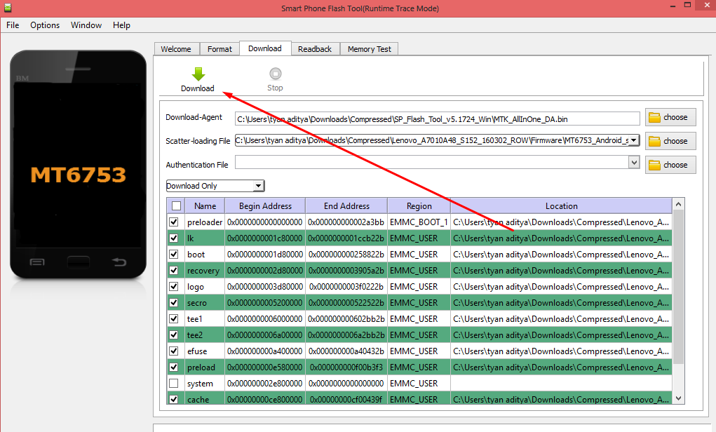 - Langkah Kedelapan - klik tombol Download untuk memulai melakukan flashing terhadap ponsel anda.